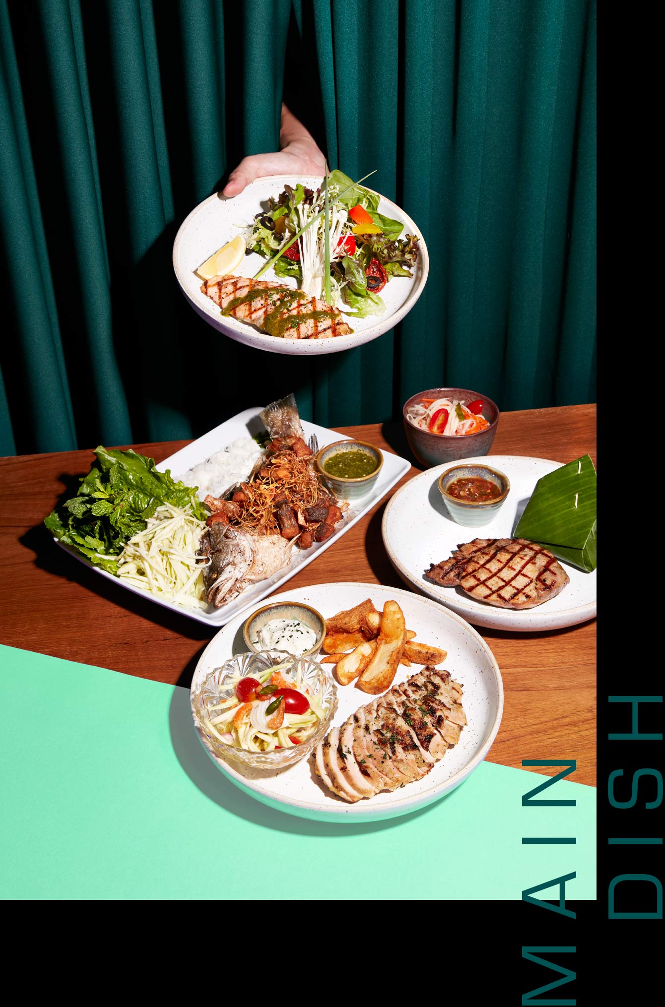 Grilled New Zealand beef or wagyu beef with Jaew sauce, Served with sticky rice and Som-Tum salad.