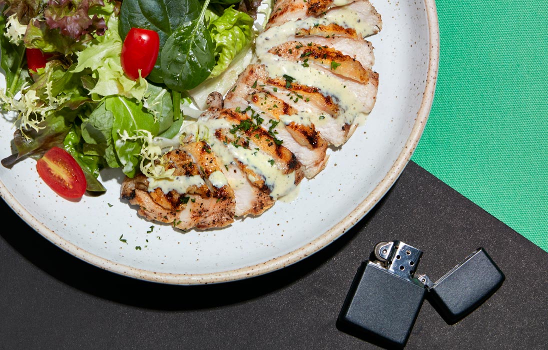Big flavor Thai style grilled chicken salad with saucy dressing.