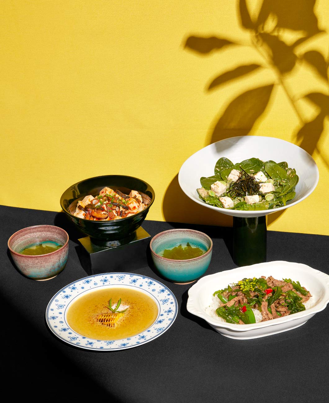Stir-fried soft tofu with sambal and kimchi paste. Served with Japanese rice and wakame soup.